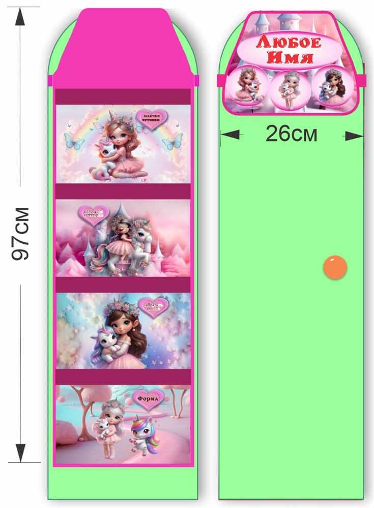 Кармашек в шкафчик "Принцессы" с именем ребенка